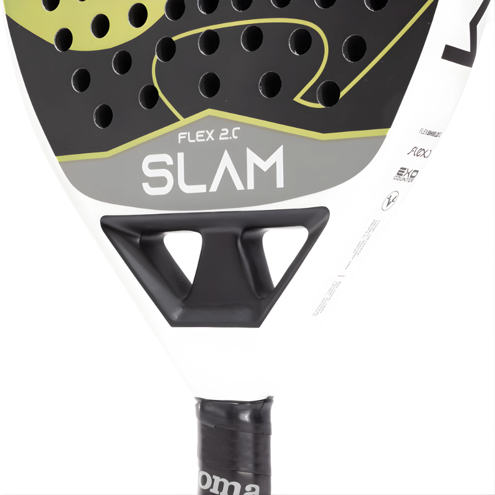 La paleta Slam Flex incorpora también el sistema VIBRA-OUT Slam, que logra reducir hasta un 40% las vibraciones durante el golpe, minimizando el impacto y mejorando la comodidad del jugador en cada intercambio. Esta combinación de tecnologías asegura una experiencia de juego superior, donde el control, la potencia, y la comodidad se unen para ofrecerte lo mejor en la cancha.